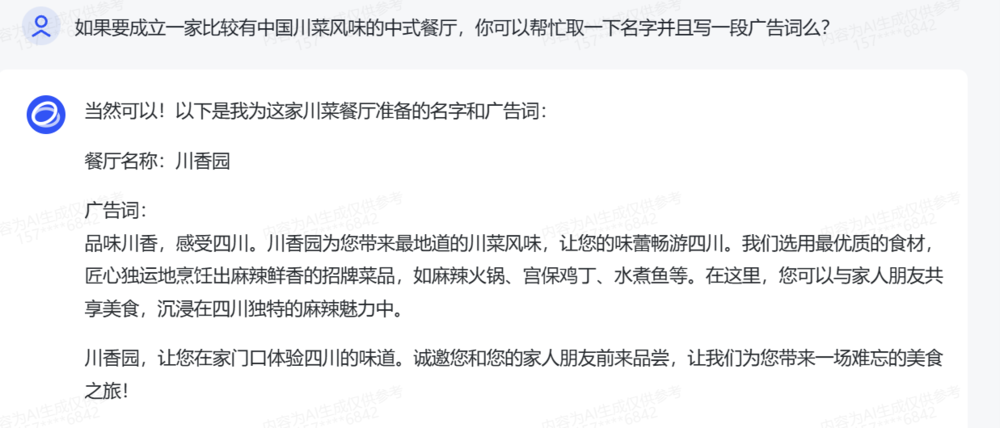 問題:如果要成立一家比較有中國川菜風味的中式餐廳,你可以幫忙取一下名字並且寫一段廣告詞麼?