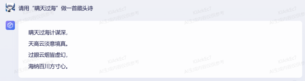從生成的結果來看,唯一滿足“藏頭詩”概念的,就只有商湯SenseChat、百川大模型做到了。其他四個大模型雖然做了詩,但都沒能理解藏頭詩的意思。