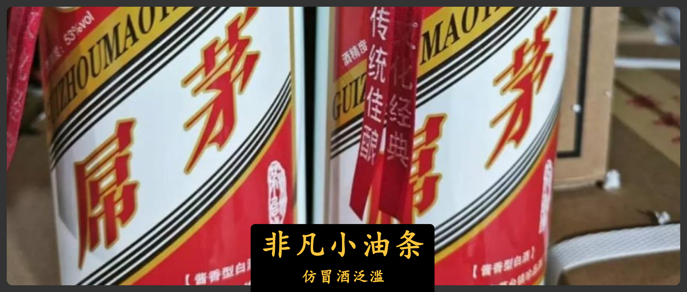 粗粗看來,還真以為這就是茅台酒,直到看到包裝和瓶身C位赫然寫着“屌茅”兩個大字。
