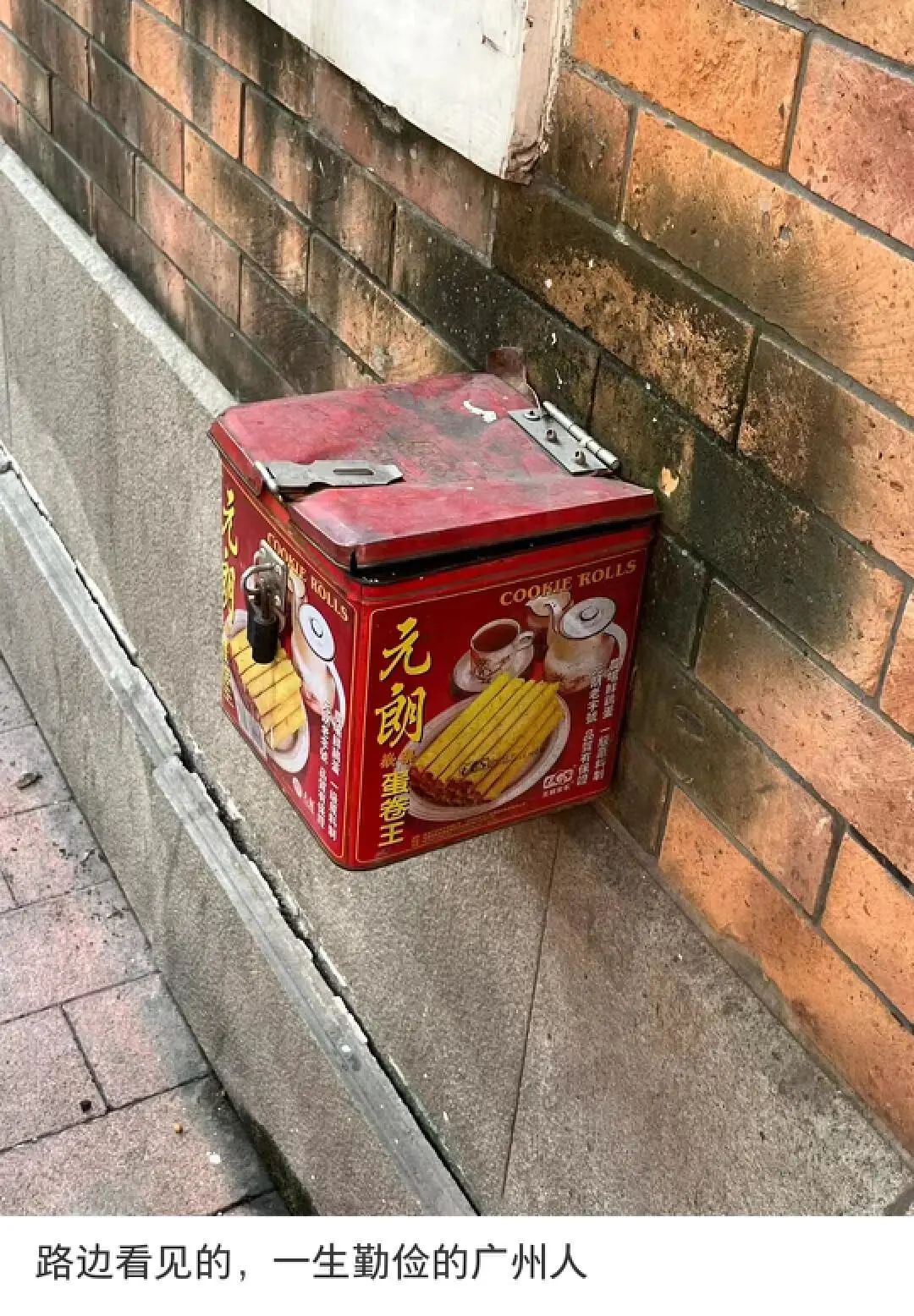 前些日子,有心細如髮的街溜子,於廣州街頭看到了一隻裏面沒有蛋卷的元朗蛋卷盒。