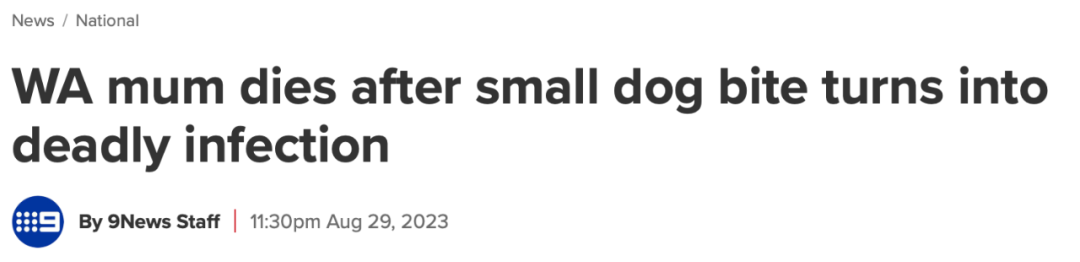 上週,在西澳州,珀斯一位兩個孩子的母親在被狗咬傷後死亡。