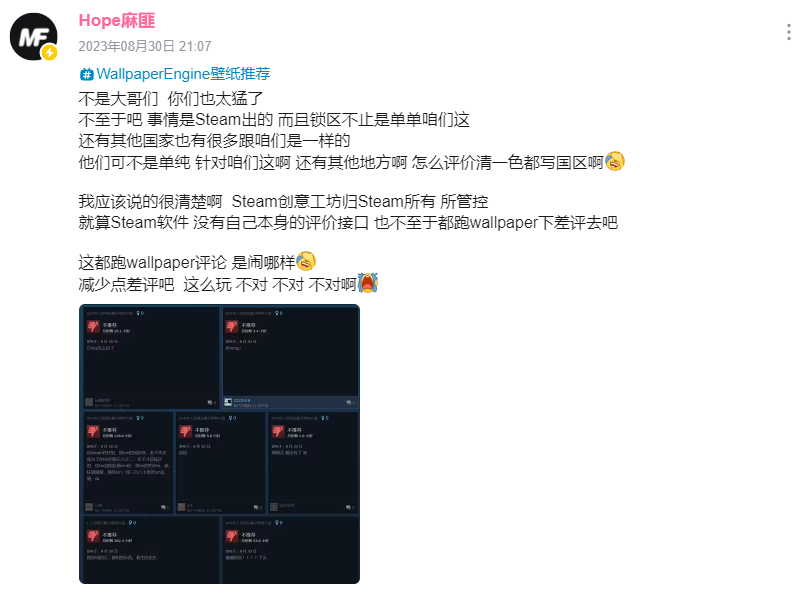 只不過,這一次《Wallpaper Engine》官方更像是“人在家中坐,鍋從天上來”。在大多數網友的理解中,這次事件就像是軟件官方主動鎖上了國區,從而影響大家的衝浪體驗。
