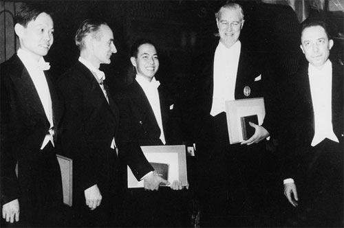 ● 1957年李政道(中)和楊振寧(左一)獲得諾貝爾獎
