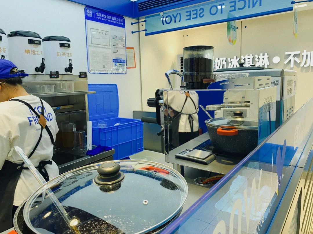 吧枱有“手作呈現”:門店吧枱上,有消費者肉眼可見的蒸鍋、煮鍋,現蒸芋頭、現煮珍珠、飲品中的糖漿,也是每天新鮮現熬的蔗糖糖漿。