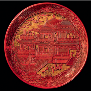 明代剔紅滕王閣漆雕盤
