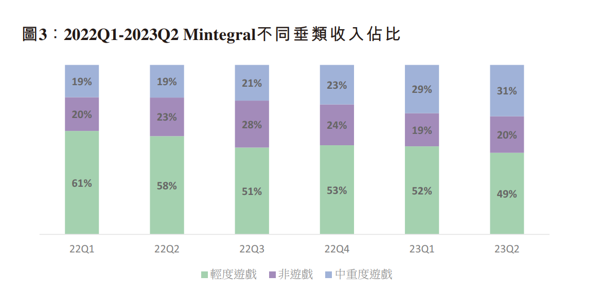 另一方面,Mintegral此前的收入是以輕度遊戲為主,但中重度遊戲因為用户羣固定和生命週期長,買量的密度、穩定性更強,週期也更長。而Mintegral持續優化產品,符合中重度遊戲在長週期視角下的需求,中重度遊戲的收入佔比持續走高。另外,AppGrowing數據顯示,中國廠商在重度類別上,營銷投入和市場佔比都遙遙領先,Mintegral具有一定的地緣優勢。