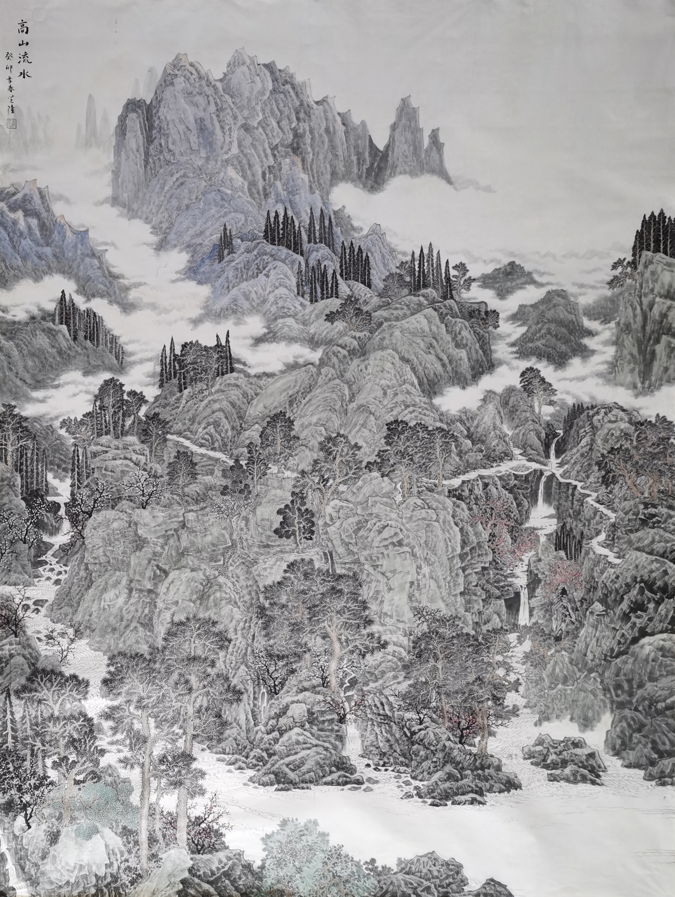 宋芝隆總是以“繼續中國傳統畫派”為創作根基,他非常注重中國人文精神的滲透,通過創作表達自己的思想感悟和情感體驗。他筆下的山水丘壑,峯巒疊嶂,水清林秀。他藉助山水的奇妙構成,來反映自然的寂靜與恢弘,來傳遞對自然的崇拜與敬畏之情。
