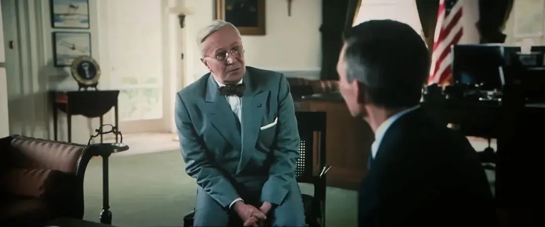 《奧本海默》臨近尾聲時,杜魯門在白宮橢圓形辦公室接見奧本海默。