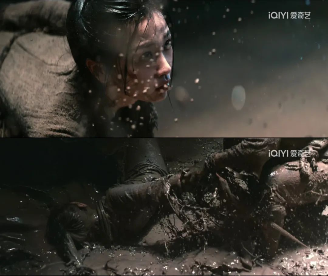 正在執行任務的云為衫(虞書欣飾),驀然想起那個在冰冷泥水裏玩“男生女生向前衝”的日子。贏的人沒有空調冰箱,但輸的人會直接永遠涼涼。在那緩慢的一秒鐘,《雲之羽》把主角和觀眾都鎖死在一個“時空凝滯”的區間。你沒法去思考別的東西,只能靜靜看着郭敬明把自己的癮過完。