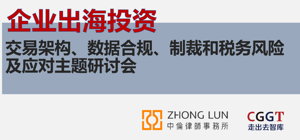 9月6日,中倫律師事務所和走出去智庫聯合舉辦**“企業出海投資:交易架構、數據合規、制裁和税務風險及應對主題研討會”,由走出去智庫(CGGT)總經理陸俊秀主持,中倫律師事務所侯彰慧、李瑞、賈申和畢馬威企業諮詢税務總監崔箭做主旨演講****,**從法律、商業、財務和税務的不同角度探討中國企業出海投資的熱點實務問題。