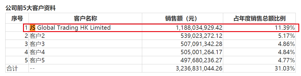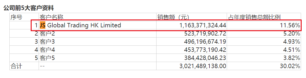 其中,僅JS Global Trading HK Limited(以下簡稱:JS)一家企業就貢獻了8.43億元,同比暴漲64%。也就是説,今年上半年,九陽有將近20%的收入來自於JS。