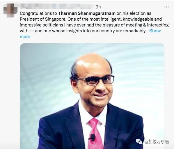 新加坡印度商會,也祝賀尚達曼當選總統,並表示期待同他保持交流。