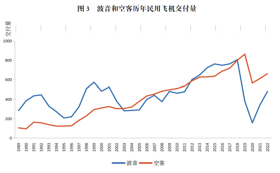 **總之,國際民用航空工業的新一輪“戰火”已經在熊熊燃燒,之前主要發生在美歐之間,現在主要發生在美俄和美中之間。**美國在航空技術領域頻頻出招,反映出美國在民航工業領域日益加大的危機感。2018年與2019年,波音王牌機型737MAX先後發生兩起空難,暴露了波音飛機的一系列質量問題。受此影響,2019年,波音飛機的交付量只有375架,訂單也創歷史新低,波音不得不關閉多條總裝線,大規模地裁員,並揹負了鉅額的財務壓力,計劃中的對巴航工業的兼併也不了了之。競爭對手空客則乘勢大幅躍進,全年交付量達到863架的歷史新高,且新訂單紛至沓來,各條生產線都開足馬力。2022年,空客飛機交付量661架,波音交付量為480架,空客飛機交付量連續四年領先波音位居全球首位。一度被譽為美國製造“皇后”的波音遭遇近幾十年來的“至暗時刻”。隨着中國商飛在2022年正式交付C919,全面加入大型客機的市場競爭,波音無疑將會面臨更加劇烈的競爭壓力。