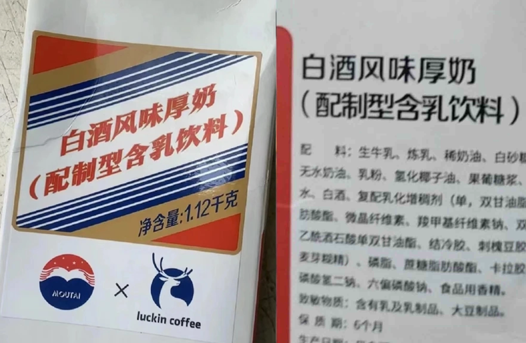 比如生椰系列,就是牛奶、糖、咖啡,加上生椰乳;碧螺知春,就是牛奶、糖、咖啡,加上碧螺春茶;而今的醬香拿鐵,也就是把茅台酒作為輔料,添加進去。它的核心口感還是來源於牛奶、糖和咖啡,輔料的添加,只是提高它的風味,讓你在喝咖啡的時候,可以喝到椰汁的味道,也可以喝到白酒的味道。同時,這些輔料的添加,又不會破壞牛奶、糖和咖啡的底色。