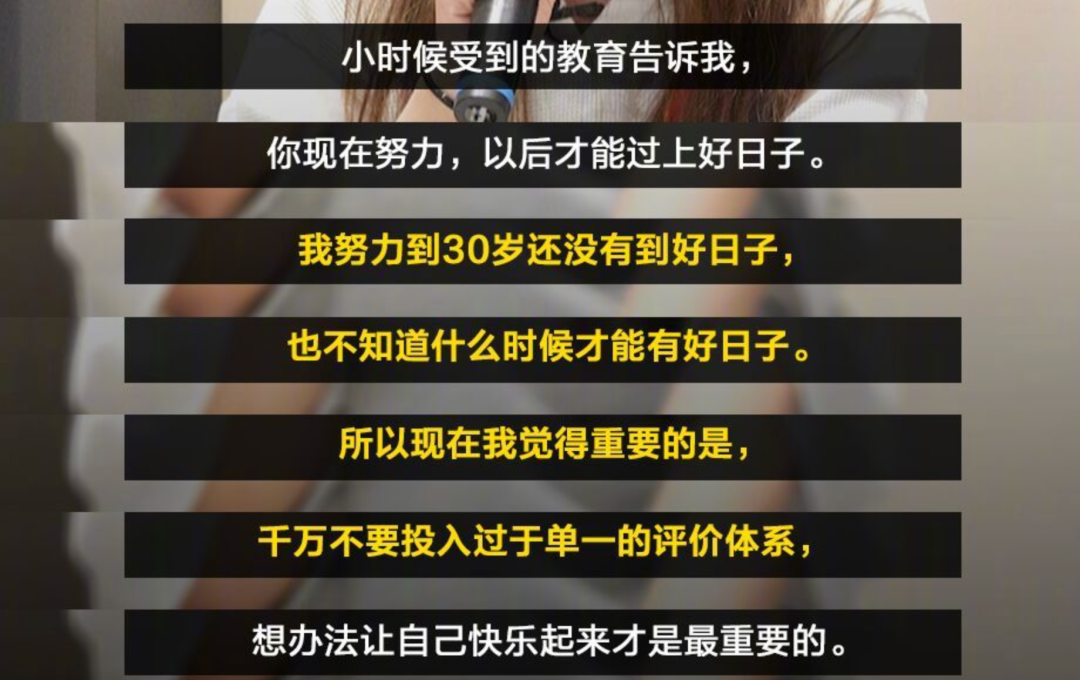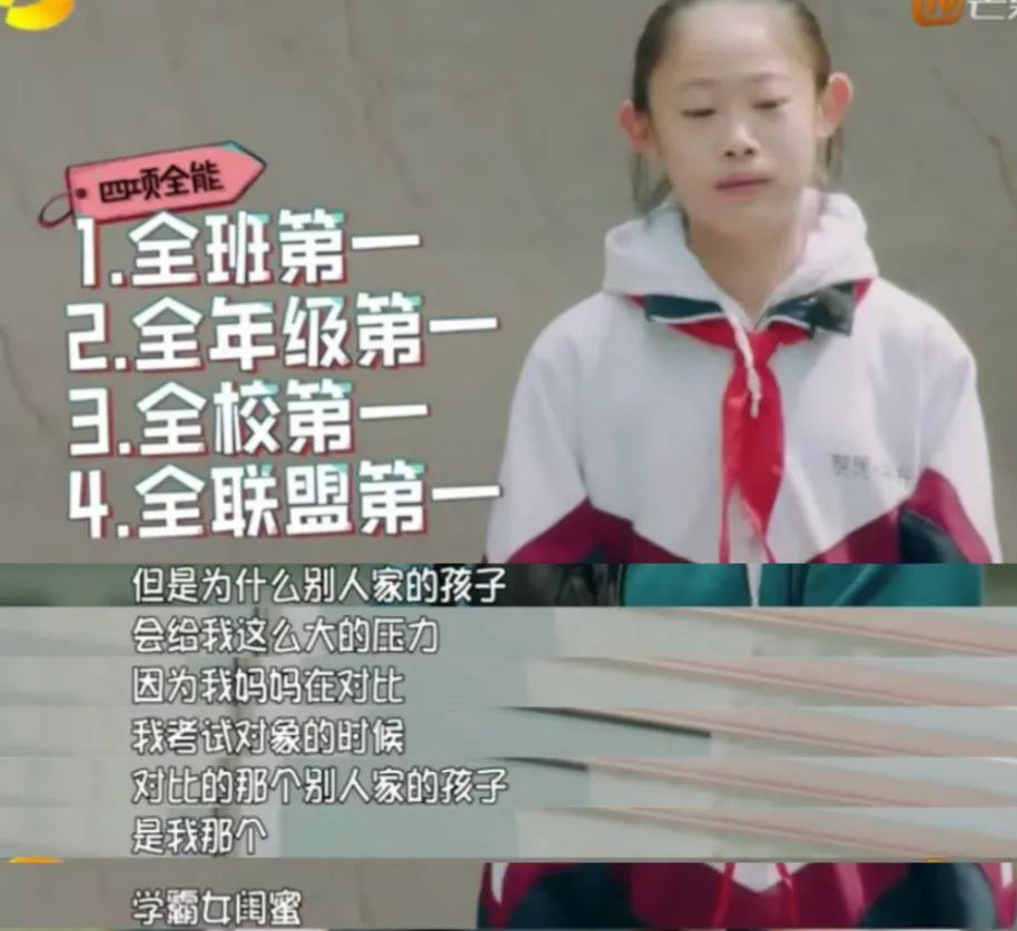 之前在一檔綜藝《少年説》裏,節目組安排孩子對家長喊話。一位女兒對媽媽總是打擊自己感到很受傷,鼓起勇氣對媽媽説「我很努力,為什麼你不看一下!」