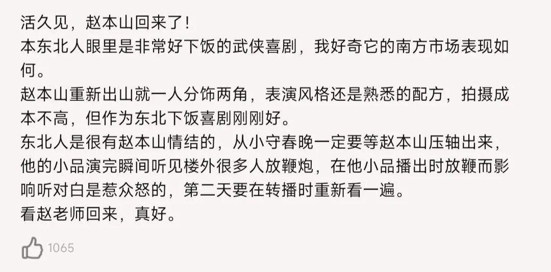 還有網友表示:東北喜劇,還得是本山大叔最對味。