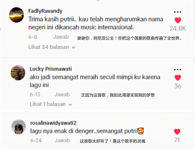 然而,Kezia的成名故事絕非個例,前文提到的印尼歌手Putri Ariani同樣是通過演唱中國熱歌改編版而走紅,她從沒有代表作的音樂人一躍成為印尼本土炙手可熱的新星。