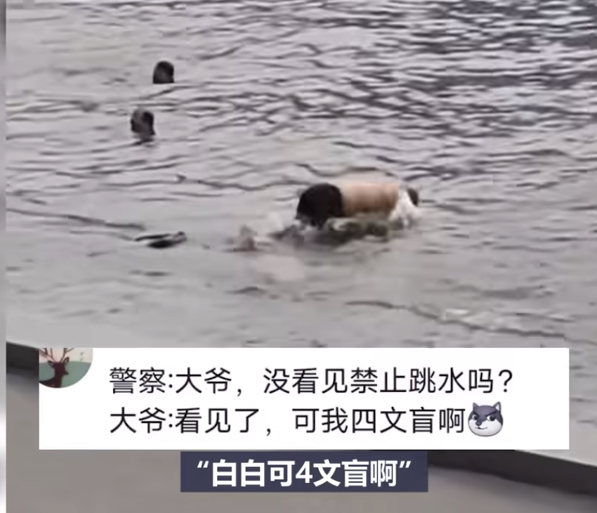 嚴格來説,公共水域確實禁止跳水,並且河面上也有“禁止跳水”的提示。