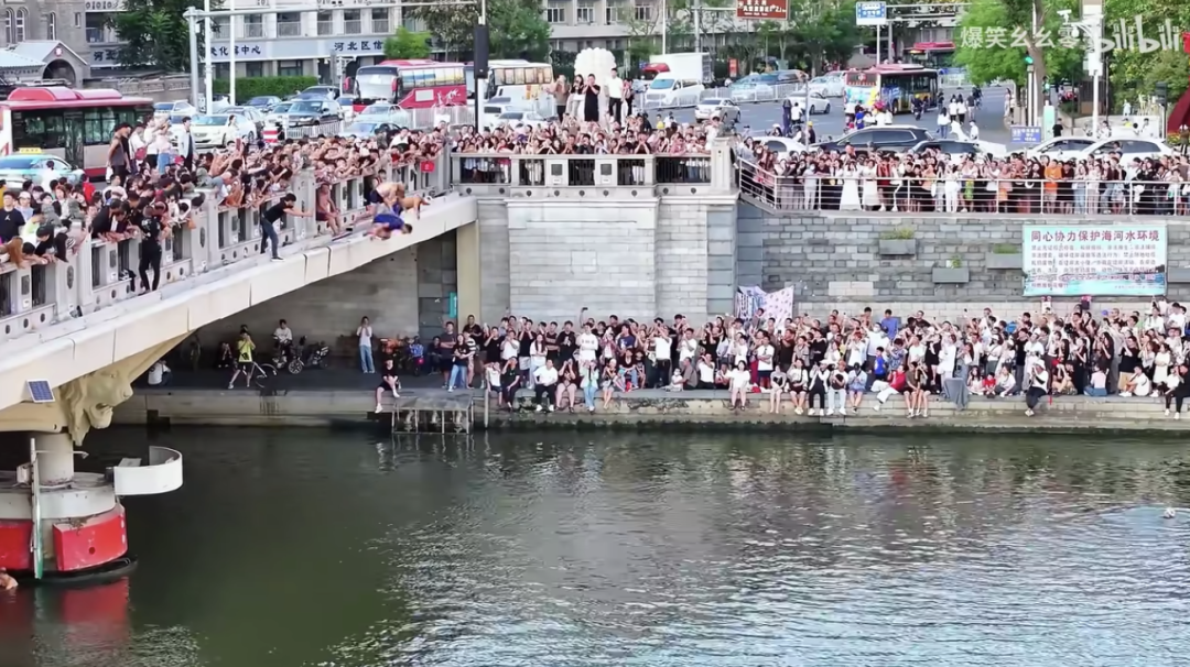如果説青天白日跑到橋上跳水,是一羣天津掰掰們的快樂,那麼前來圍觀和來跳水的年輕人都是為了什麼呢?