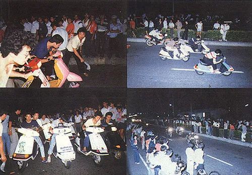 如果你能穿越回到1986年的冬夜,走在飆車族的起源地北投大度路現場,不僅能看到造型奇特准備競速的車手,還有圍觀熱鬧的羣眾,為了搶佔中間安全島的VIP觀戰席位還可能大打出手。觀看途中覺得餓時,還可以找路邊的流動攤販,香腸麪食飲料應有盡有。
