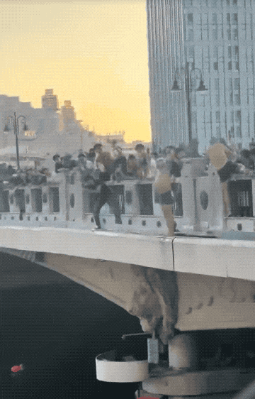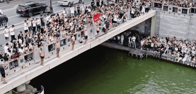 隨着“大爺跳水秀”越來越火熱,天津人驚奇地發現所有能跳水的橋上和岸邊都擠滿了人,整個天津衞,已然 “跳”成了一鍋粥。
