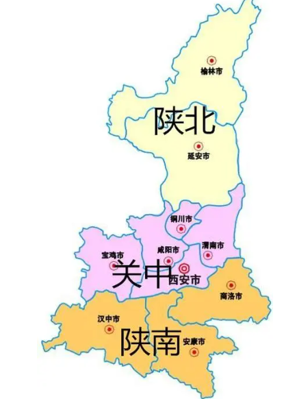 與英國類似,陝西分為陝北、關中、陝南這三個地方。