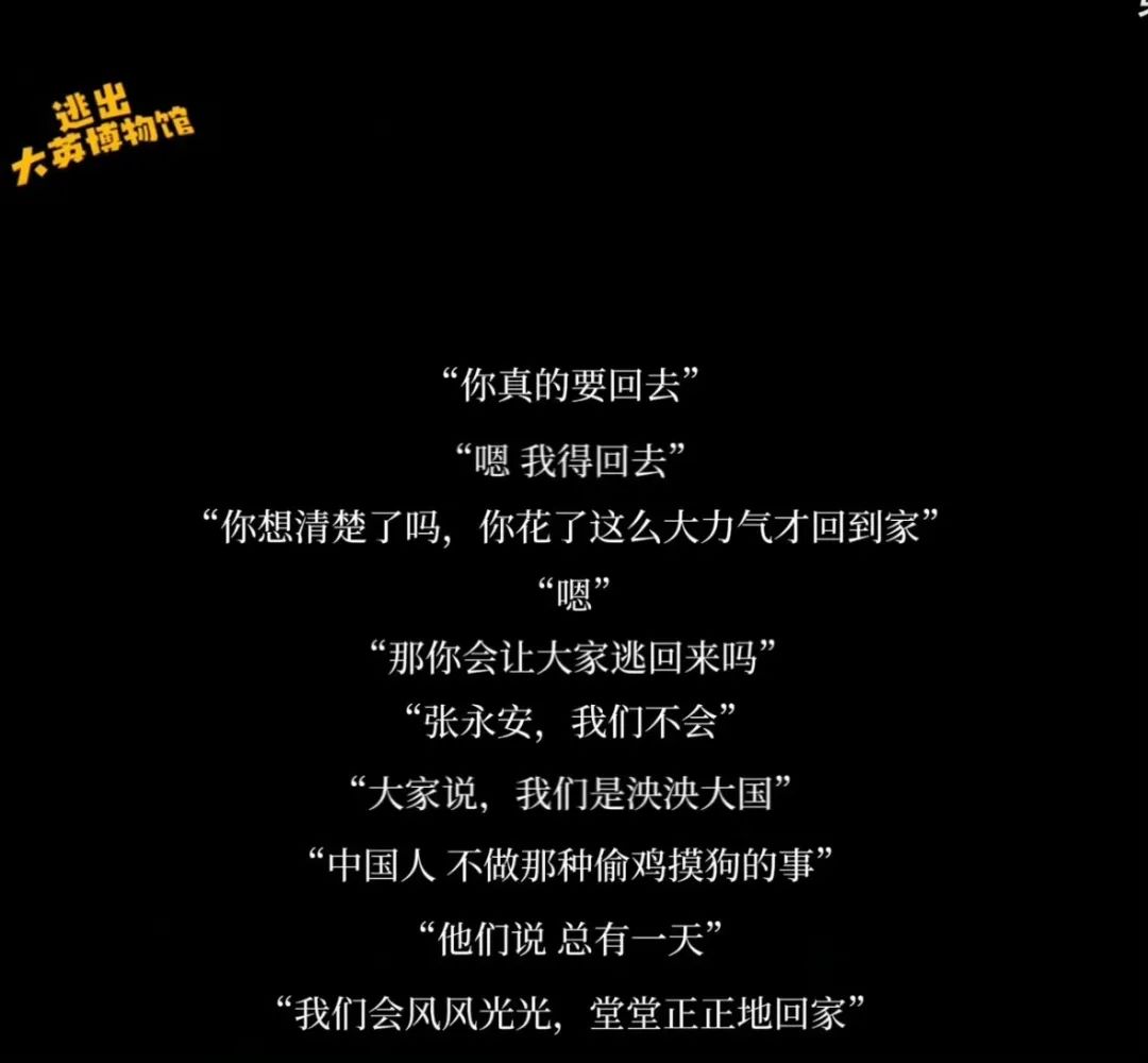 某種程度上來看,《逃出大英博物館》的出圈,正是品質化的體現。尤其是當劇情來到結局,更多的劇情被主創們以更節省成本的純文字形式體現。但“中國人不做偷雞摸狗的事”“總有一天,我們會風風光光、堂堂正正地回家”等振聾發聵的台詞,依舊讓《逃出大英博物館》第三集也成為短劇上線以來口碑最好的一集。