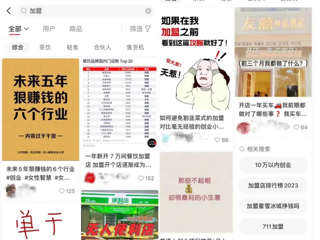 我先是在各大社交平台檢索“加盟”,之後在搜索結果裏選出符合自己要求的品牌,並通過私信的方式順利加到了對方的微信。