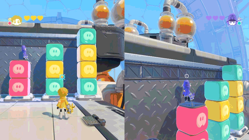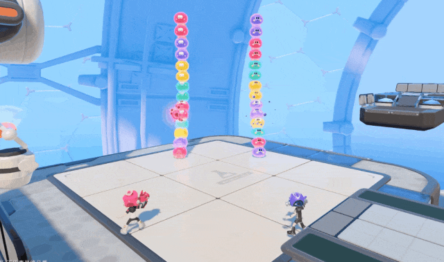 實際上,“同色三消”的規則幾乎潛伏在遊戲的方方面面,既能成為解謎的關鍵,同時也可能是出其不意的陷阱。例如一些場景需要依據顏色搭建階梯,你完全可以在隊友跳躍的過程搞破壞,或是先人一步登頂,然後轉頭過河拆橋。