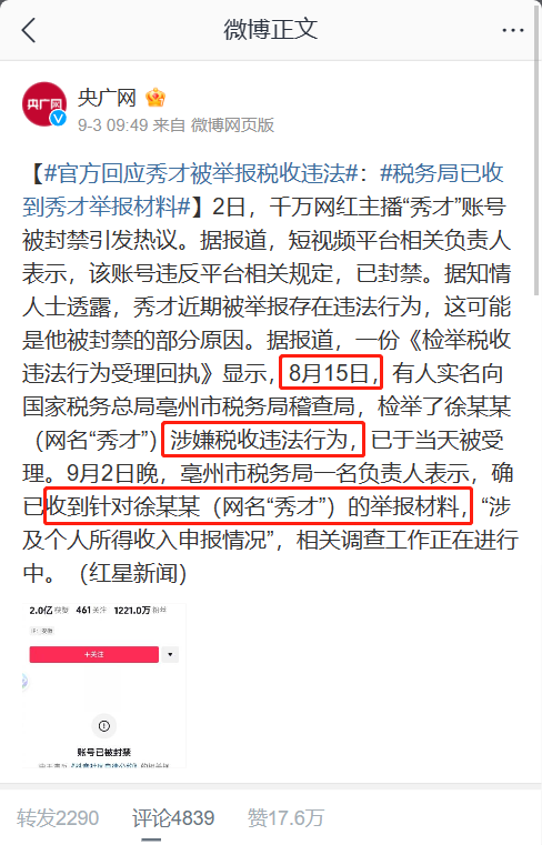 另一方面,則出現在時間上。因為秀才被舉報,是發生在今年5月份的事情。過了3個月後才封,這發射弧未免也有些太長了吧?