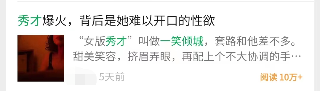 一種是對秀才粉絲審美的嘲諷。覺得她們沒有眼界,不懂得欣賞,竟然會喜歡秀才這樣的油膩男。