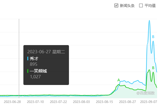 但在百度指數里,我發現從6月27日至8月中旬期間,秀才和一笑傾城,幾乎是沒有熱度的…