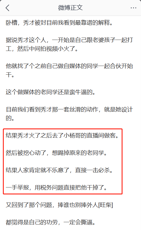 1.秀才想跳槽去小楊哥那邊,結果秀才的合夥人不樂意,於是用税務問題直接爆破秀才…