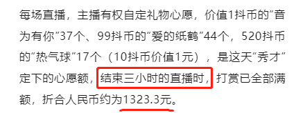 離開1分鐘,就少5000人,整場直播點贊有317.6萬!但收到的打賞,卻僅僅只有1323.3元…