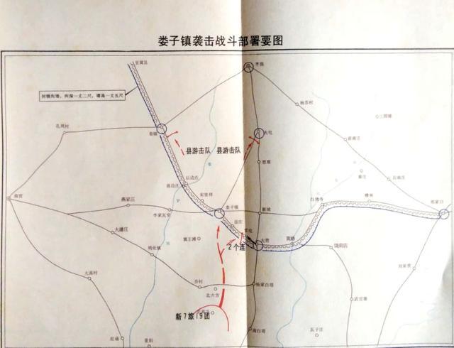 婁子鎮敵據點駐有日軍18人,其中小隊長一人,配備輕重機槍各1挺,擲彈筒1具,步槍若干。另有偽軍、偽警察和便衣特務三十餘人。據點工事堅固,屯有大量彈藥、食品和資財。婁子鎮東南8公里之大營鎮,駐有日軍一箇中隊部和部分日軍。