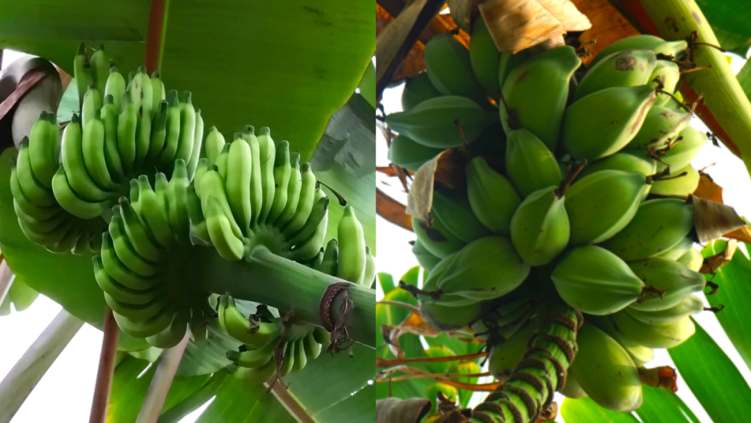 左圖為小果野蕉果實;右圖為野蕉果實