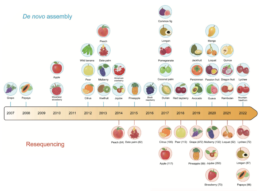 重要果實作物測序時間線。圖片來源:參考文獻[1]