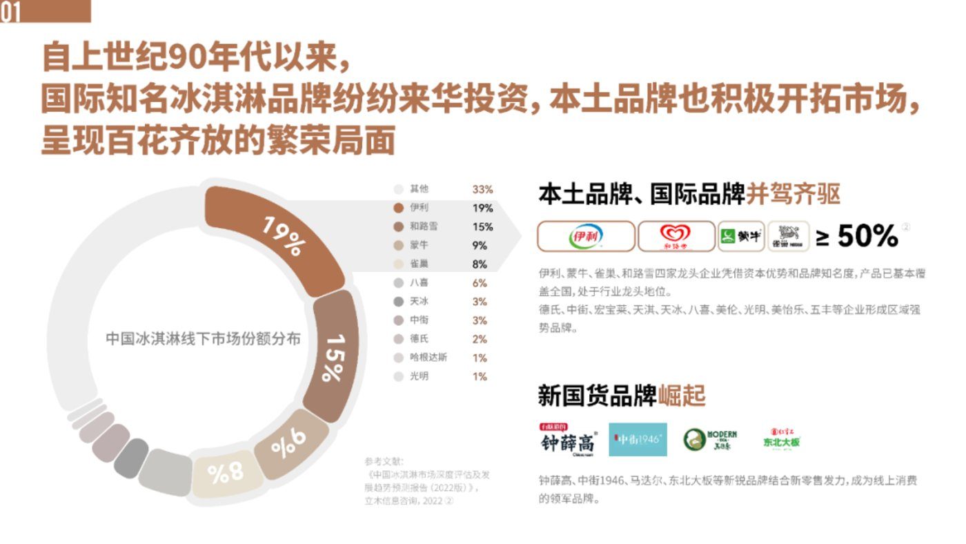 如今的中國雪糕市場已呈現本土品牌、國際品牌平分天下的局面。一方面,中國雪糕市場在向中高端發展的過程中,除了有和路雪、雀巢、八喜、哈根達斯等起源於外資的品牌,越來越多老牌冰淇淋企業也加入到中高端雪糕大戰中,本土品牌積極開拓市場。