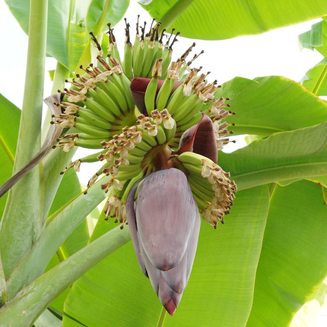 香蕉的花朵有兩層花瓣,裏面有很多雄花和雌花。雄花在上面,雌花在下面。雄花會先開放,然後掉落。雌花會被授粉,然後變成果實。
