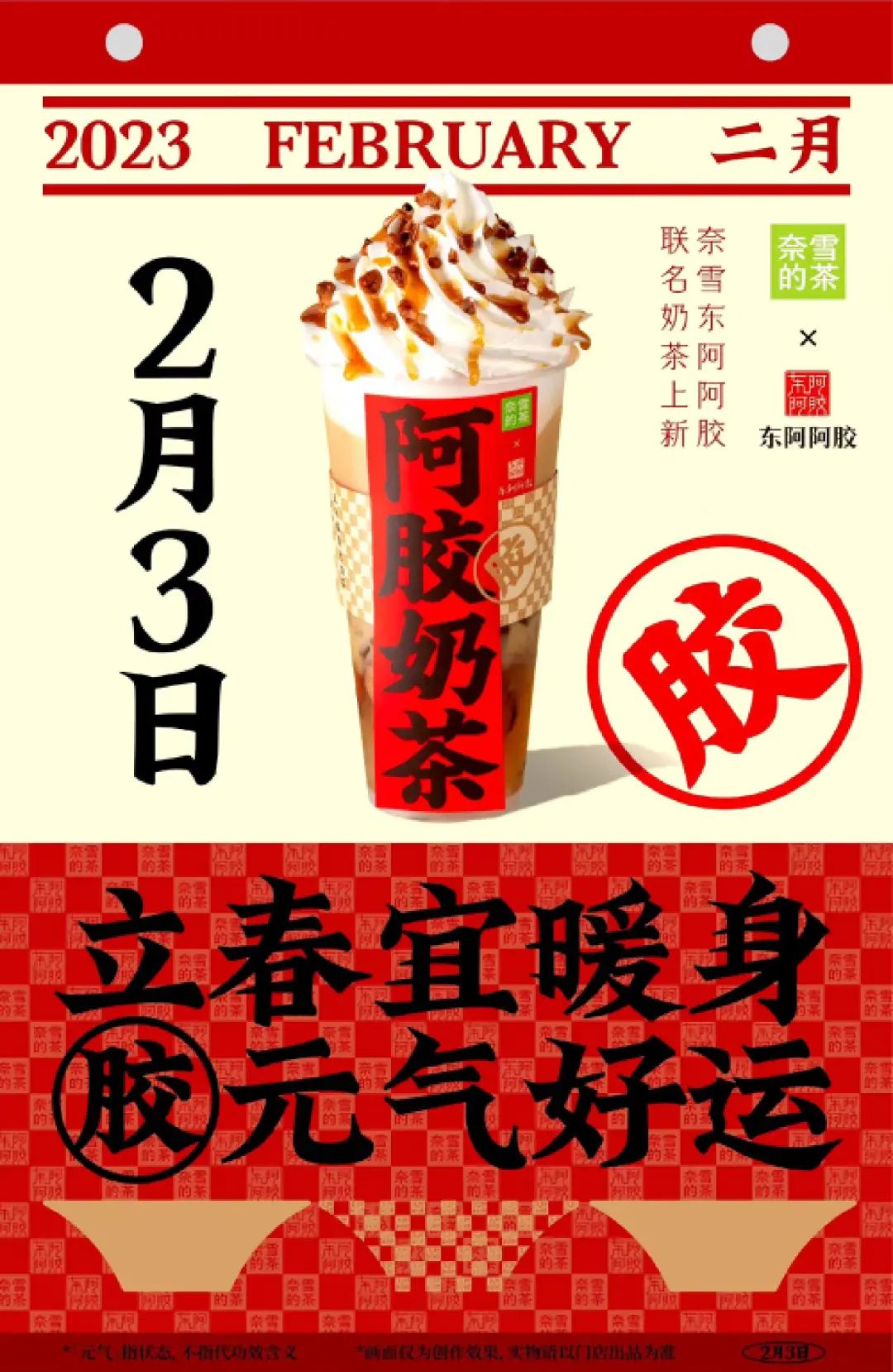 二月份的時候,奈雪的茶就和東阿阿膠聯名了阿膠奶茶,狠狠抓住中式滋補養生這個大風口。