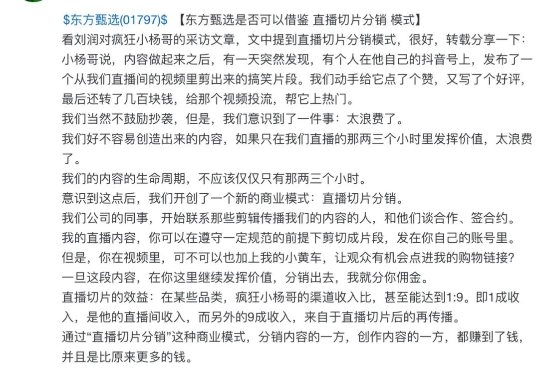 但是,為什麼小楊哥的粉絲對這樣的切片、“小號矩陣”可以接納,而董宇輝的粉絲卻很反感呢?因為東方甄選的基因是教師團隊、知識分子,而小楊哥的民間草根氣質則更適配“野蠻生長”,截然不同的孵化背景和品牌特點,也存在着受眾差異。