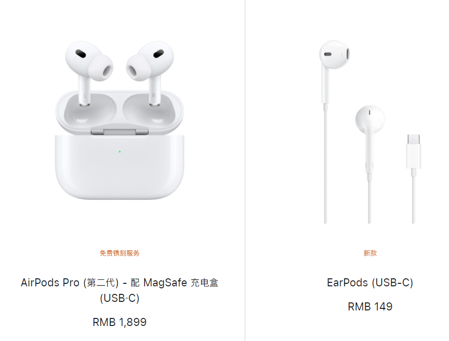 價格較為便宜的iPhone 15和iPhone 15 Plus也換上了USB-C接口,有線耳機和第二代AirPods Pro也同步改用USB-C,已經有11年曆史的蘋果Lightning接口正式結束使命。
