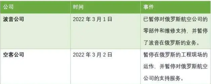俄羅斯的主要商用飛機供應商波音公司(Boeing)及空客公司(Airbus)都已經切斷了俄羅斯航空公司獲取飛機零部件的渠道。