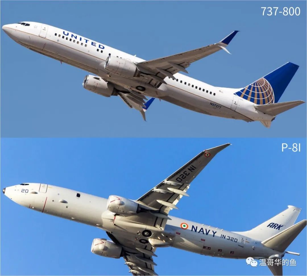 P-8A“波塞冬”是波音公司為接替P-3C而研製的新一代噴氣式反潛機,採用延程型737-800ERX的機體,也就是737-800的機身加737-900的機翼,可支持更大的起飛重量。為低空高負荷機動飛行加強了機身、機翼和機尾的結構,蒙皮比商用737厚50%;主翼翼尖改用類似波音767-400ER的斜削式翼梢,而不是737-800的雙叉彎刀式小翼或傳統翼梢小翼。斜削式翼梢與主翼的過渡平整圓潤,比主翼擁有更大的後掠角,增加了翼展,氣動效率更高,更適合遠程飛行。