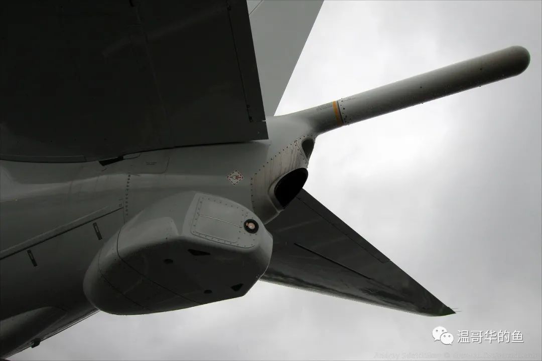 > 機頭兩側的PS-106雷達側掃天線陣面,前起落架艙後方的4具刀狀天線是聲納浮標的信號接收天線