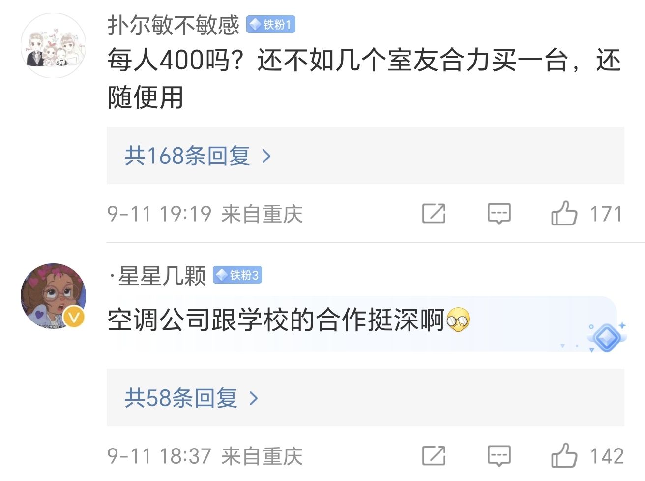 因此他也無法理解,為什麼這件事傳到網上以後,就變成了為了開這個空調,一個宿舍每個人都必須交400元,總計1600元才能用這個空調一年。