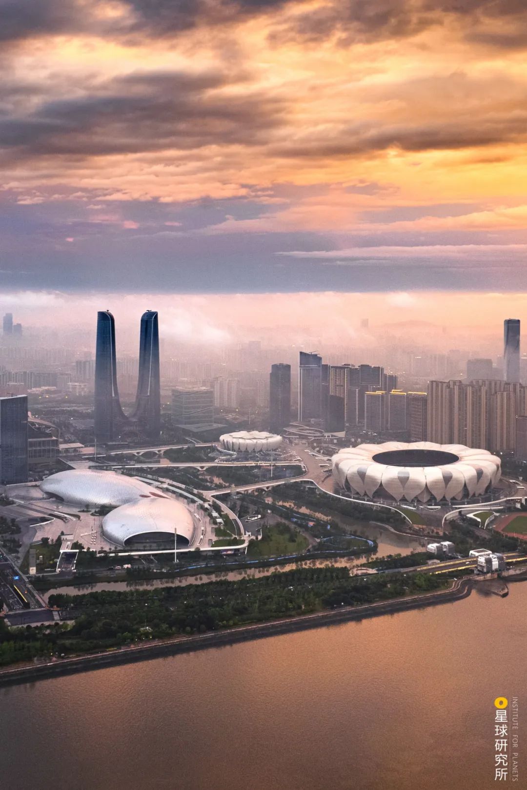 (請滑動觀看,錢塘江兩岸的杭州奧體中心與錢江新城“日月同輝”,攝影師@風靈映像)