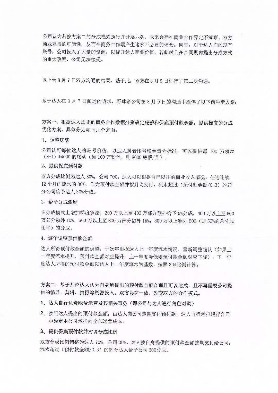 根據公告,今年8月上旬,野球帝旗下籤約的9位達人突然向公司提出變更原合作方式的需求。彼時,達人與公司的合同並未到期。