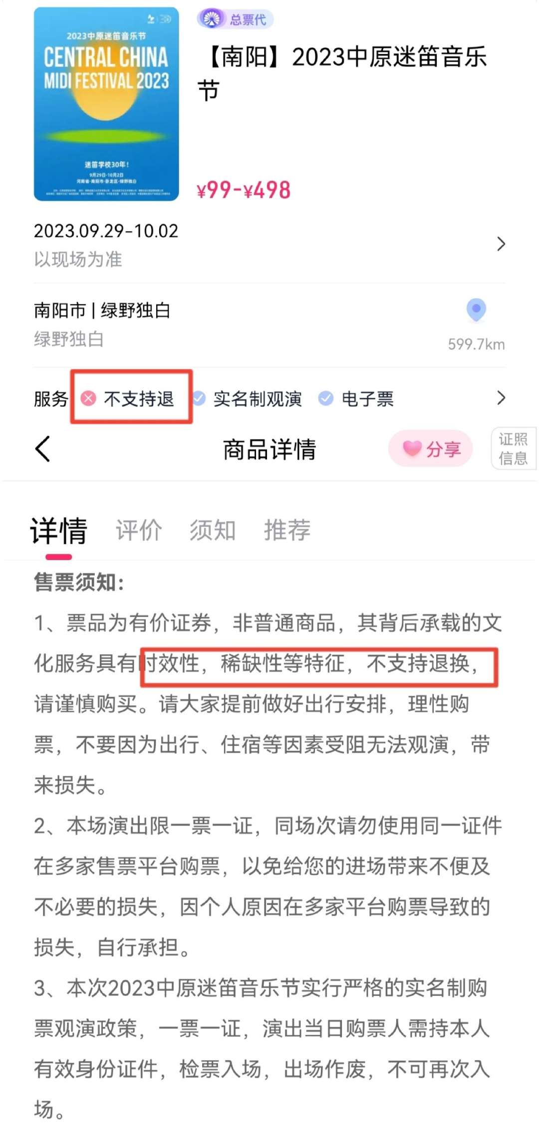 當然,幾天前剛開票的中原迷笛音樂節,也因為退票渠道不完善引起爭議。