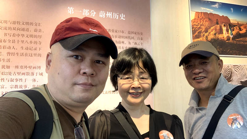 北京傳媒人、詩人愛諾,中國社科院研究員沈紅,書畫家尚甘雨參觀蔚縣壁畫保護展。
